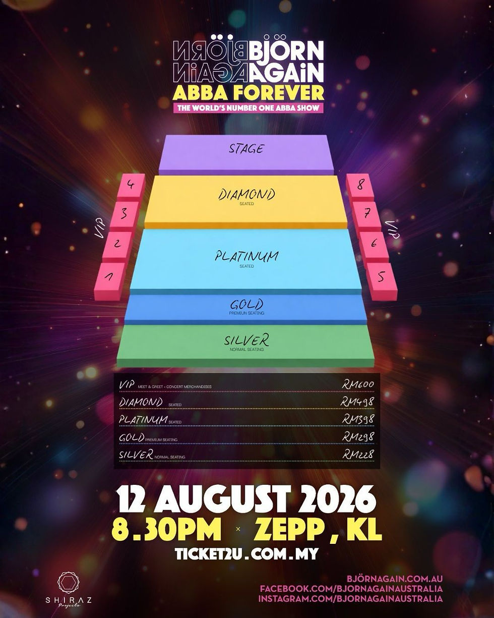 Fenomena ABBA sendiri memang tak pernah “mati”. Dari filem Mamma Mia! sampai ke kebangkitan semula lagu-lagu klasik di TikTok, muzik mereka sentiasa ada tempat dalam hati ramai. Jadi tak hairanlah tour kali ini dijangka jadi antara acara live paling hot di KL tahun 2026.